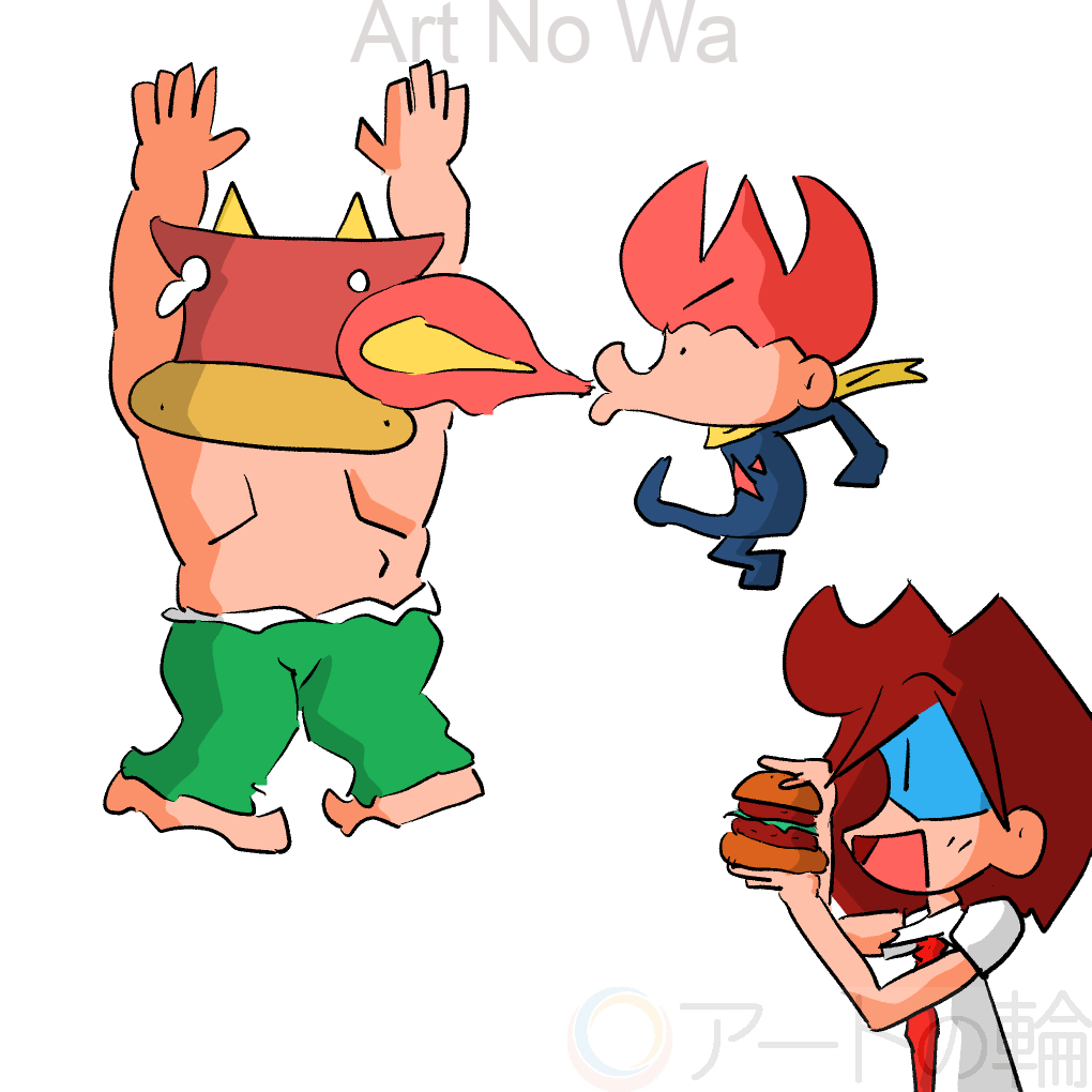 非現実,赤,人物,動物,想像上の生き物,明るい,たのしい,かわいい,2D