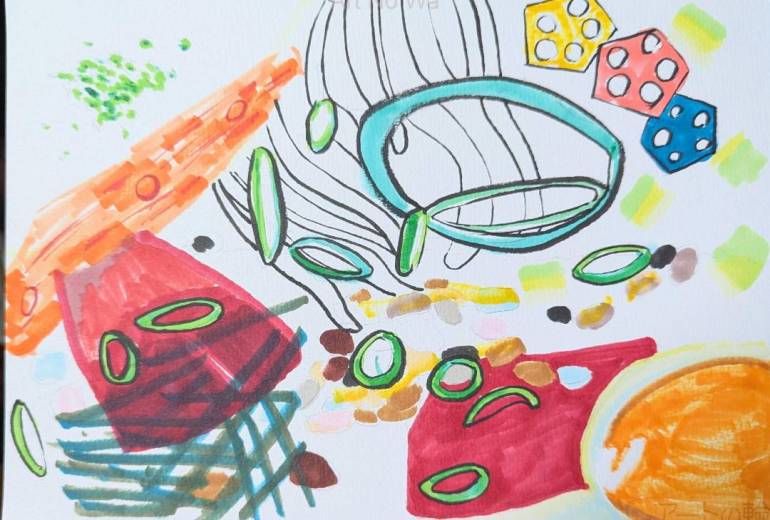大人の発達障がい者等の居場所作りを目的としている当事者会「空色のアトリエ」にて創作活動中。現在はポストカードにファンタジーや現実世界の食べ物を描いています。