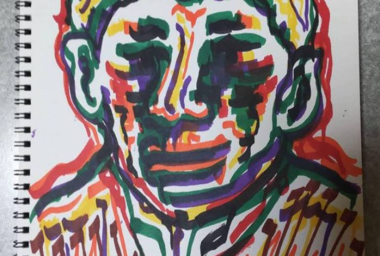 絵を発表する場として興味をもちました。つらいときは絵を描いたりして気分転換しています。また、無性に絵が描きたくなるときは描きまくっています。お坊さんの絵とか、動…