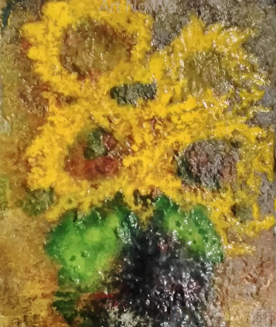 向日葵かぁむつかしい画題だね。ひまわりって黄色の花びらすっごくきれいだよ。