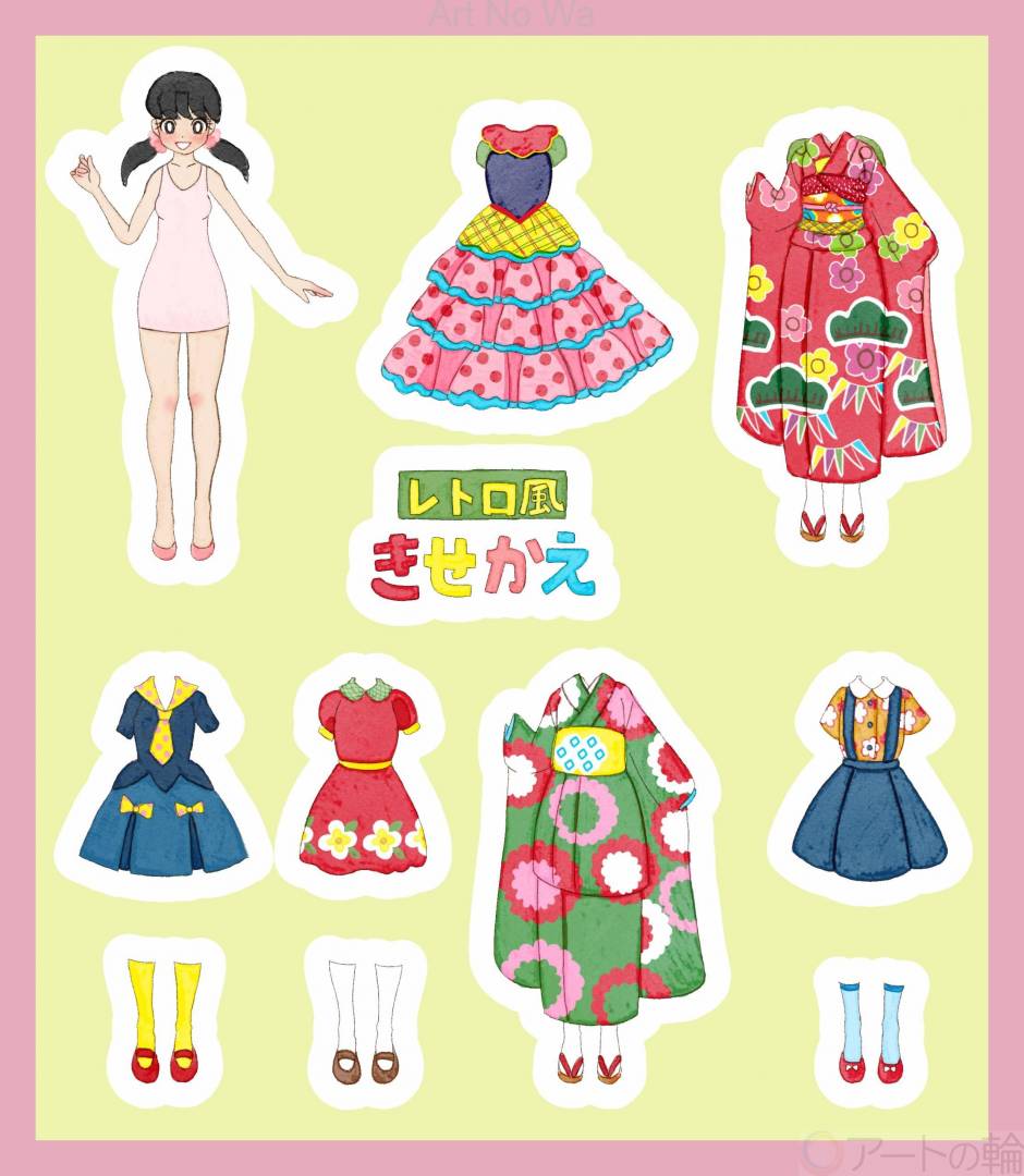 駄菓子屋さんのおまけにありそうな着せ替え紙人形を作ってみました。他にも色々作ってみたいと思っています。