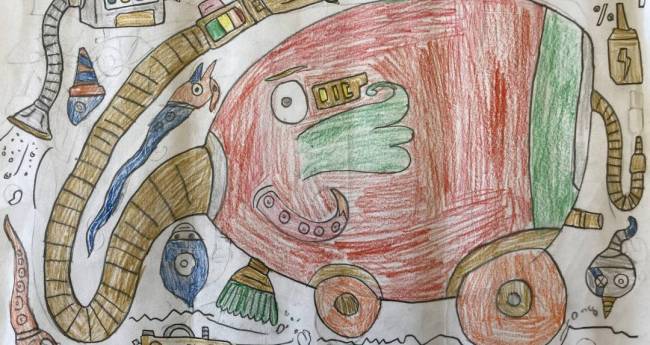 非現実,未来,赤,想像上の生き物,明るい,たのしい,わくわく,びっくり