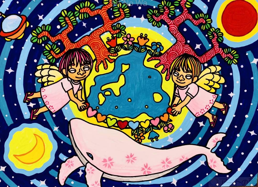 私たちの大切な星、緑と水の自然が美しい地球を描きました。大切に未来へ残したい星です。
