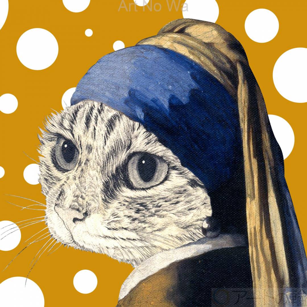 動物をテーマに、主に猫の白黒ペン画を描いております。動物の温かみ、生き生きとした様が紙の上に現れることを目指しています。コロナをきっかけにデジタルとアナログの融合を模索し、『真珠の耳飾りの少女』をオマージュしたフェルメール猫シリーズが生まれました。 17種のSDGs(持続可能な開発目標)カラーを引用し、『12 – フェルメール猫とつくる責任、つかう責任 〇仕事と産業』を制作しました。背景の大小さまざまなドットには、それぞれの立場はちがえど、これら人類共通の目標に向かって進んでいきましょうというメッセージを込めました。