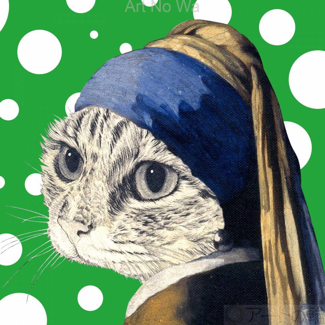 動物をテーマに、主に猫の白黒ペン画を描いております。動物の温かみ、生き生きとした様が紙の上に現れることを目指しています。コロナをきっかけにデジタルとアナログの融合を模索し、『真珠の耳飾りの少女』をオマージュしたフェルメール猫シリーズが生まれました。 17種のSDGs(持続可能な開発目標)カラーを引用し、『15 – フェルメール猫と陸の豊かさも守ろう 〇自然と文化』を制作しました。背景の大小さまざまなドットには、それぞれの立場はちがえど、これら人類共通の目標に向かって進んでいきましょうというメッセージを込めました。