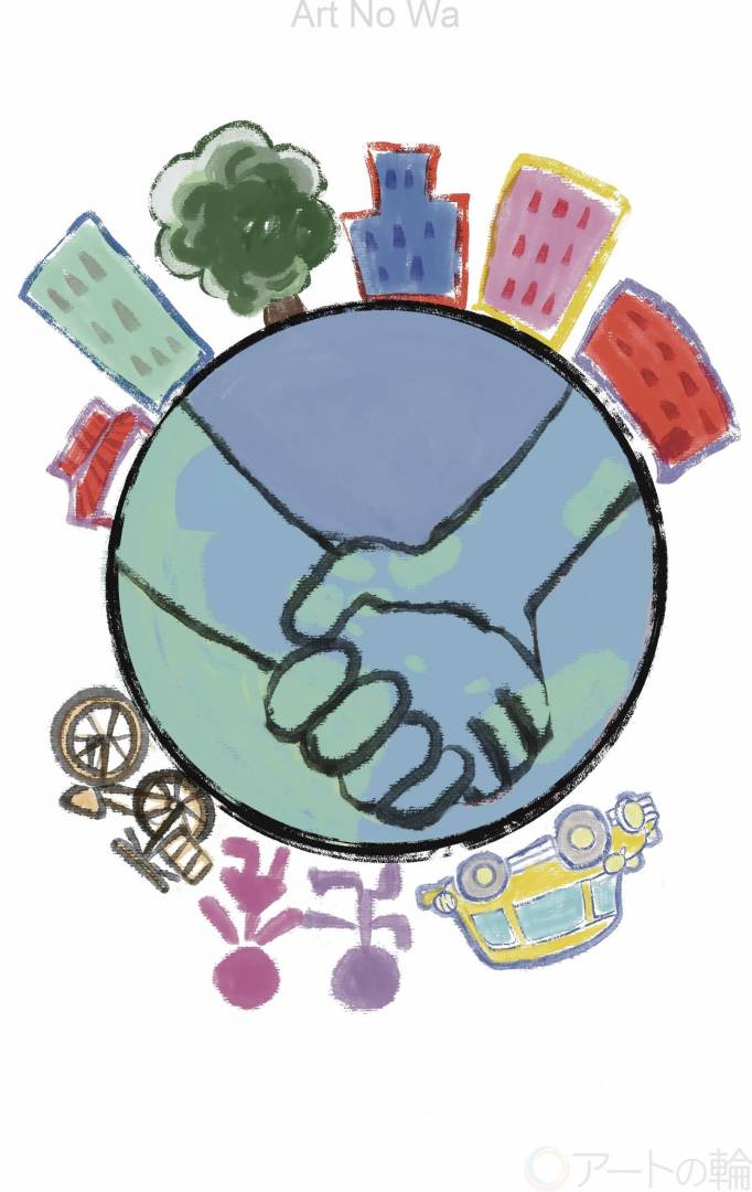 地域も世界もうまく繋がって手を取り合っていけるようになればいいな、そんなシンプルな気持ちで描きました。