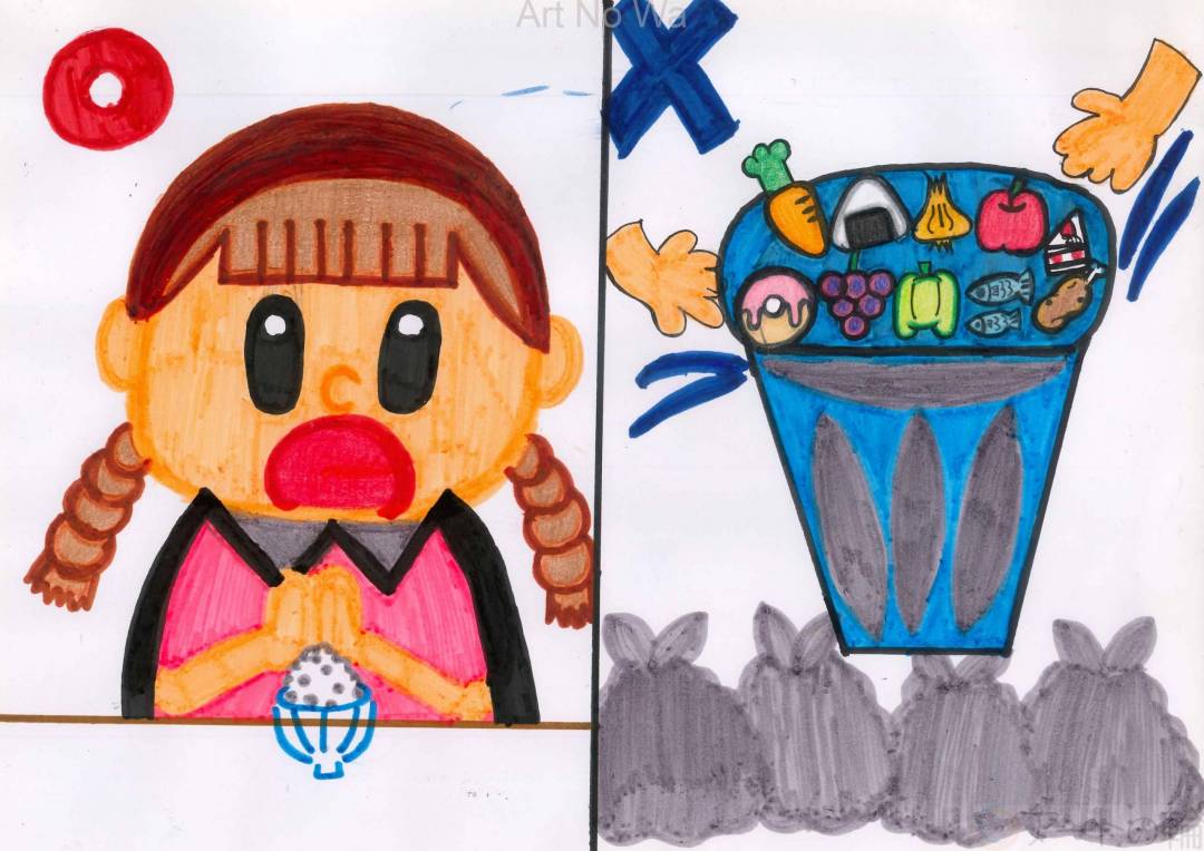 フードロスについて書いてみました。イラストを描くのがとても大変ですごい描くのに悩みました。