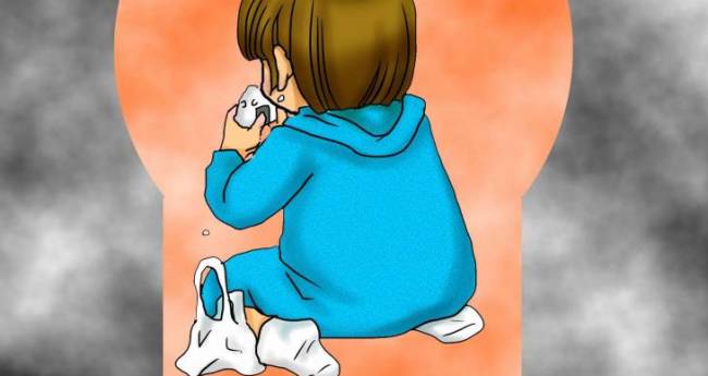 一人でご飯を食べる幼少の貧困を切ない夕暮れと部屋の暗さで表現しました。