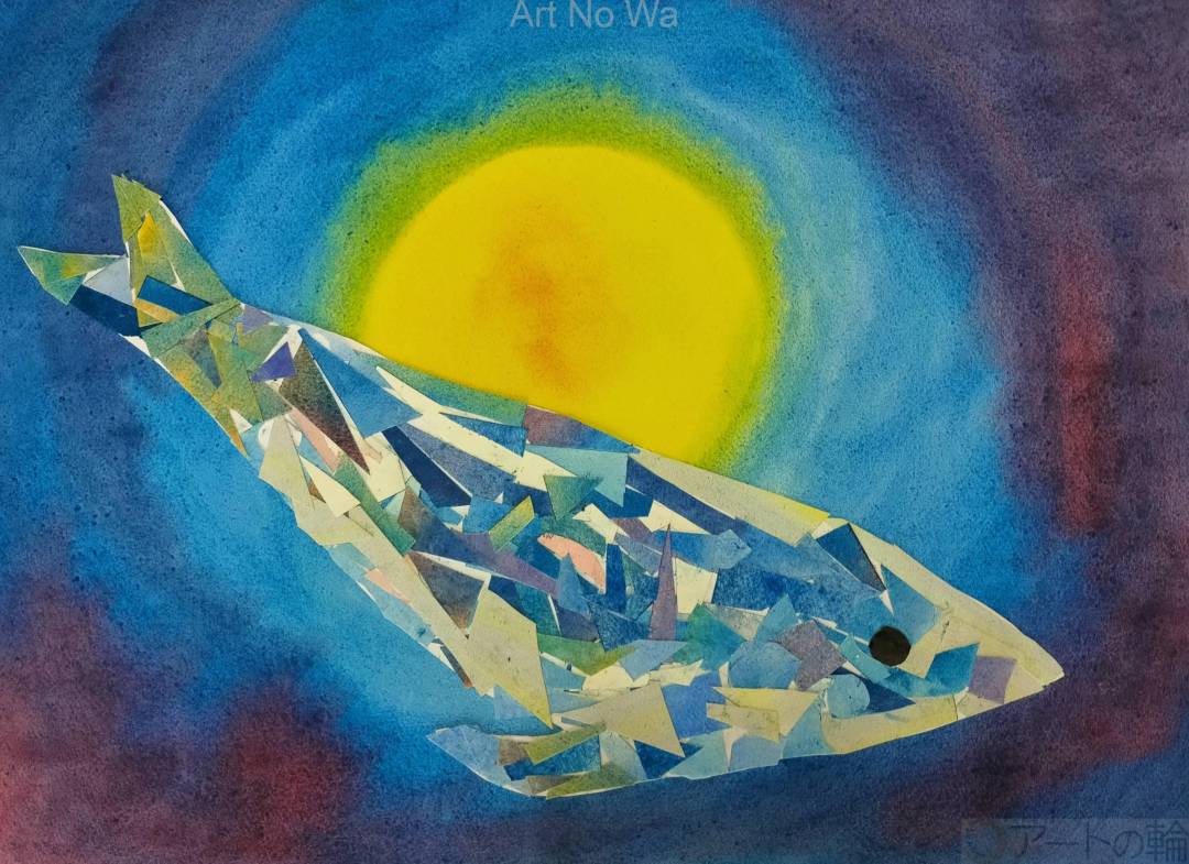 全盲が描いた絵。地球最大の動物シロナガスクジラ。私は見たことはないけども、こんないきものが同じ地球にいることを想像するだけでワクワクしてしまう。千年先、一万年先、百万年先も優雅な姿で泳いでいて欲しいという願いを込めました。