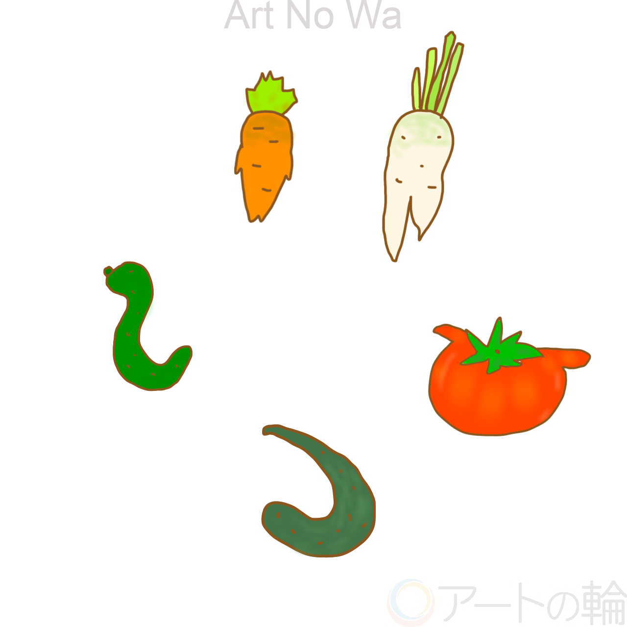 あれれ? 不思議な形のやさい。 でも、なんだかたのしいね。 みんなは何にみえるかな?