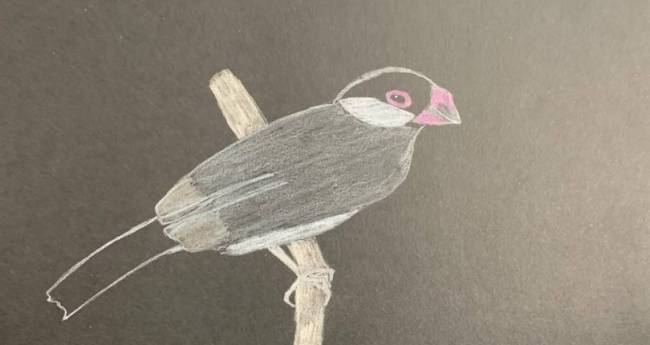 文鳥の中でもノーマルなタイプを黒のスケッチブックに描いてみました。