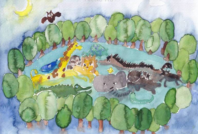 海の中にいるようにゆらゆら揺れて、涼しげな風が吹いている様子を描きました