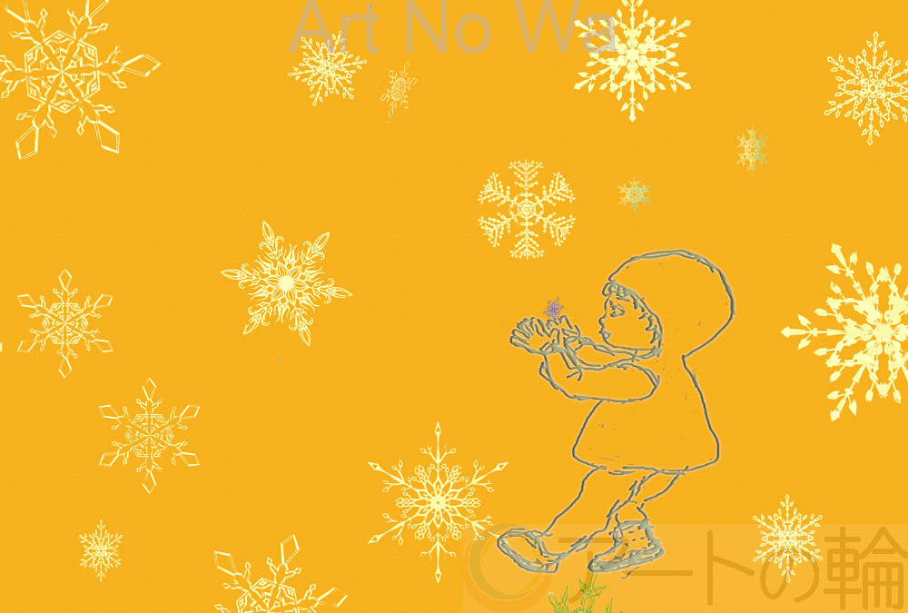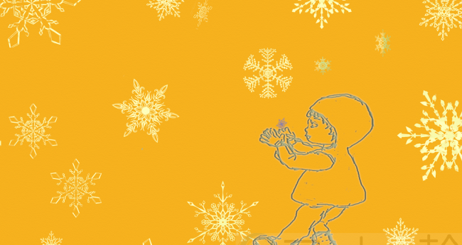 自然,冬,黄色,白,子供,明るい,たのしい,どきどき