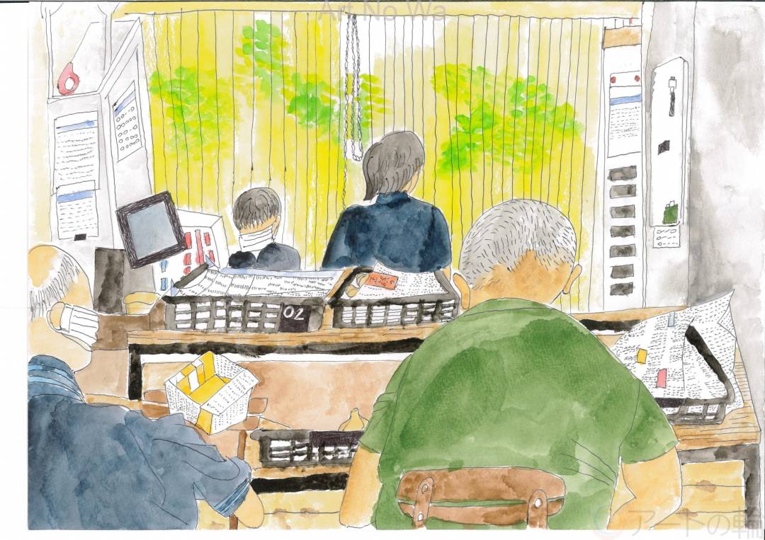 障がいをもちながらも、いっしょうけんめいに作業に専念する仲間たちを描いた。