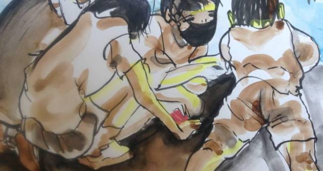 小春日の中ゲームに無我夢中、私はこの時代、自身の将来の姿に、いかに生き抜いたら良いのかと、怯え悩みの毎日だった。無邪気な経験が無かっただけに年老いた今でさえこの子供たちの仲間に入りたいと、真剣に願うのである。