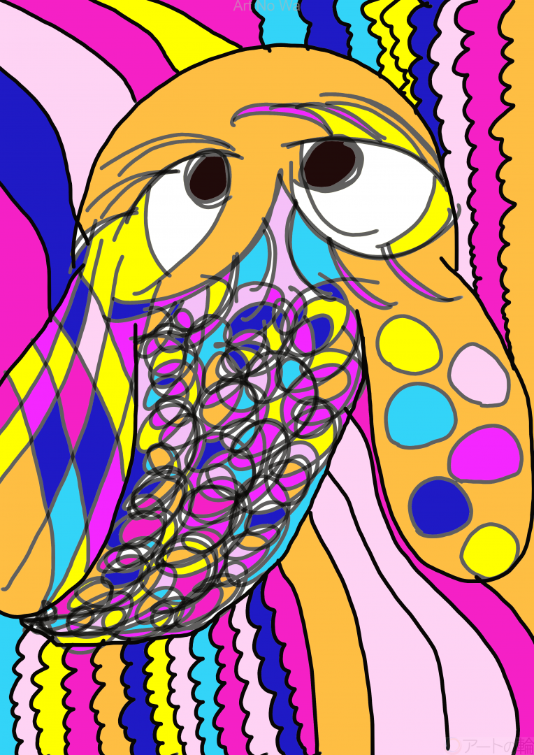 うさぎを描こうとしてたんです・・・。鳥になってしまいました。芸術って自由な発想が許されるので楽しいです。冬といえば、というテーマで友人にアイデアを尋ねてみたところ、ふわふわ・もこもこというキーワードが出て来て、採用!と思ったので作業に取り掛かり始めました。頭と耳を描いた時点ではうさぎだったのですが・・・。目を描き終えてから、これはフクロウじゃないか!とツッコミましたね。繊細に線を描いたため、色塗りは大変でした。凛々しい目つきと鮮やかな色彩がポイントです。楽しんでいただけると幸いです。