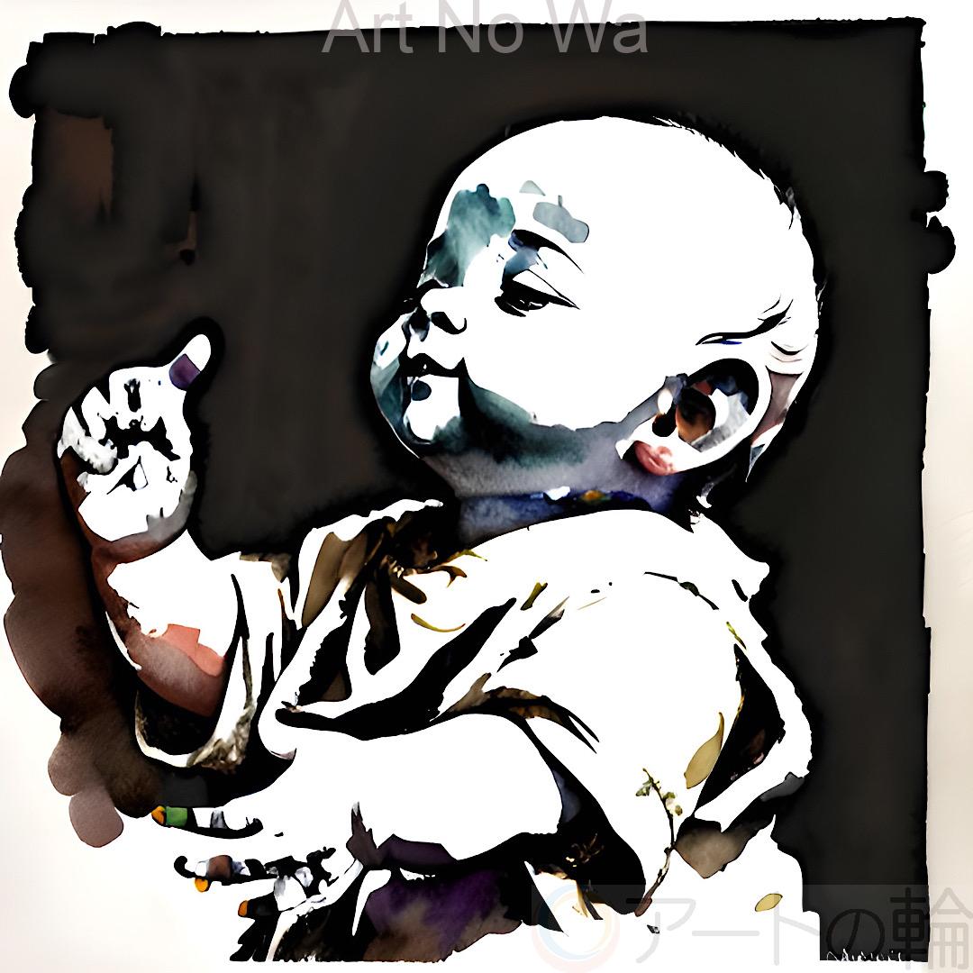 Nice to meet you. I have a chronic illness that causes my muscles to atrophy and I am writing #AIART while wearing a ventilator and recuperating at home. I generated Buddha’s birthday to comfort the victims of infectious diseases and wars around the world. Thank you. “Watercolor of a cute baby with his right hand pointing to the sky.”
