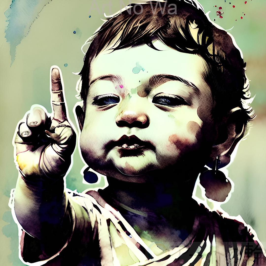 Nice to meet you. I have a chronic illness that causes my muscles to atrophy and I am writing #AIART while wearing a ventilator and recuperating at home. I generated Buddha’s birthday to comfort the victims of infectious diseases and wars around the world. Thank you. “Watercolor of a cute baby with his right hand pointing to the sky.”