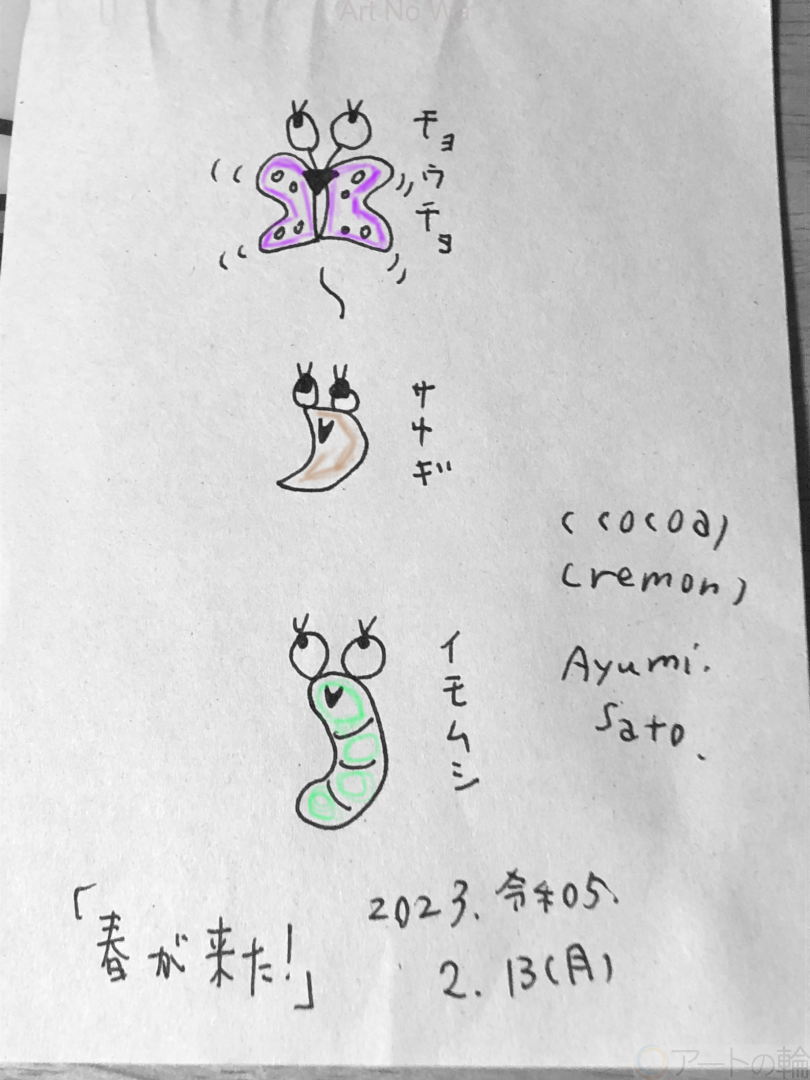 非現実,屋外,空,未来,春,3月,4月,緑,紫,動物,昆虫,想像上の生き物,子供,明るい,たのしい,かわいい,わくわく,どきどき,びっくり
