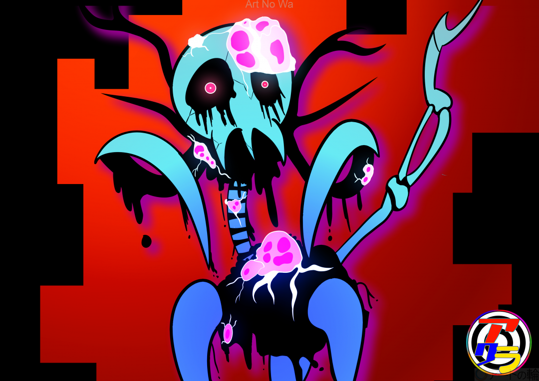ある研究施設で行われた実験で誕生した魔物。死体にスライム、魔力、人々の悪意、魔物や人間達の魂を入れ込んだ事により、誕生した人造魔物「ネクロフェージ」。この魔物がどの様な目的で作られたかは不明。そして、この魔物は誕生した瞬間に研究施設にいる、人間達を皆殺しにして、研究施設から脱走し野生化した。魔物は自分らの住みやすい環境を作る為にその土地を汚染する、川や森にいると体から有害な液体を撒き散らし周囲を腐らせる。繁殖方法は殺した生物の死体に自身の細胞の一部(体に引っ付いてる紫色にヤツ)を植え付け放置する、時間が経てばあとは勝手に生まれてくる。攻撃性が高く周囲に生物がいれば積極的に襲いに行く程。死体を取り込み成長する個体やネクロフェージを束ねるリーダー個体が存在する。この個体らは見つけ次第、絶対に討伐しなくてはならない。弱点は聖水で一滴でも体に触れればたちまち消滅する。洞窟に巣を作る事が多く、他の魔物が住んでいた場合はその魔物を殺し住処を奪う。ネクロフェージは魔族の間でも脅威となっており、この前の話ではネクロフェージの大軍勢が魔界に侵攻し魔族の集落を六つ、壊滅さてた…無論そこに居た魔族らは全員皆殺しにされた…いずれも魔界もあいつらで埋め尽くされるだろう…。奴等は殺しても殺して無限に湧いて出てくる…!奴等と戦って死ねば、奴等のお仲間入りだ…いっその方が楽か?ネクロフェージは全ての種族の敵だが、そのほとんどの種族が絶滅した、あいつらの手によって… 。人類はあと何年、生き残れるのだろうか…。