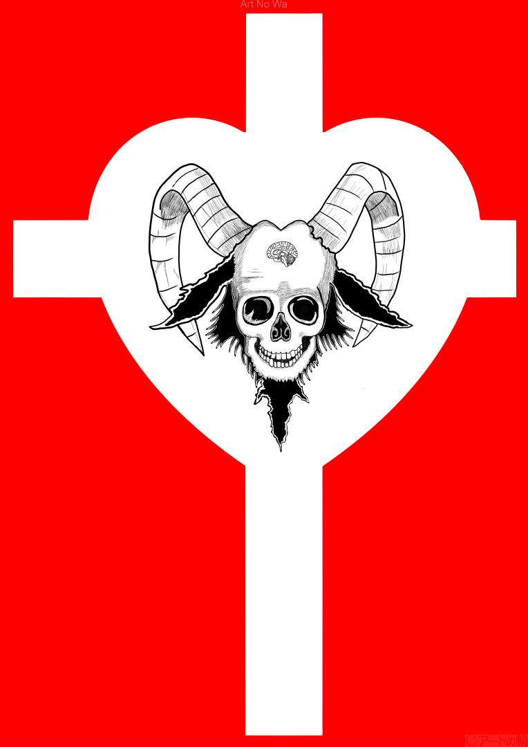 Tシャツやパーカー、マグカップ等のデザインとして描きました。種類は4種類ございまして、作品のテーマは『魂の売買と集合』です。