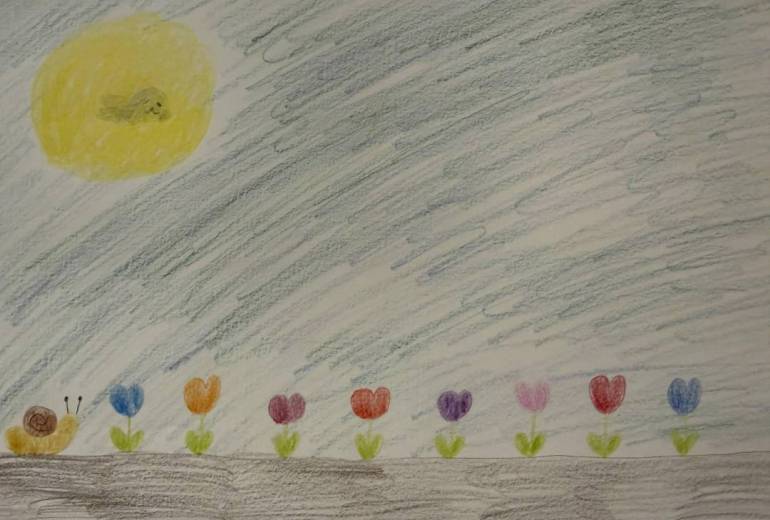 月の花が一面を照らし、星の花が周りを照らす。月の花の周りは色んなものが動いています。