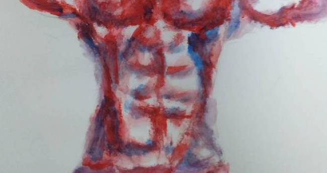 非現実,屋外,赤,青,人物,男性,明るい,2D