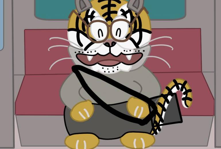 虎が電車に乗って出掛ける所