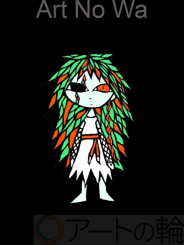 緑,黒,人物,想像上の生き物,子供,暗い,かわいい,2D