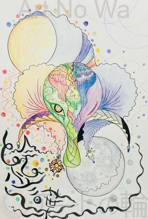 左半分が朝で右半分が夜を表現しています。自然が神様だった時代に敬意を込めて!神聖な雰囲気がある絵です。