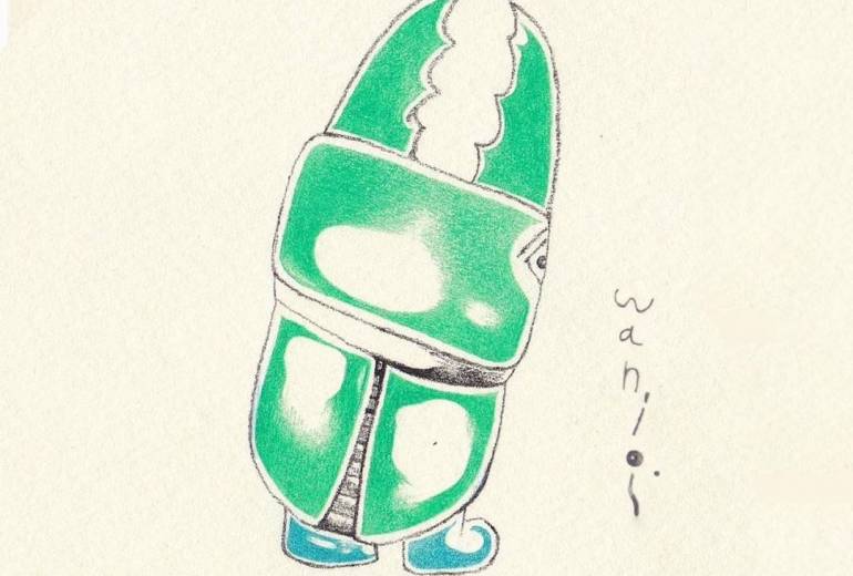 「作品の題名は描いた後に考えてます。ビート・ジェネレーションを代表する作家ジャック・ケルアック。不思議と彼の作品を思い浮かべました。リベラルを謳うのではなく、自ら体現する姿勢。戦後のアメリカには多種多様のアートがあったと思います。「路上」に記された情景もその一つでした。後に、資本と共に肥大化して行くアメリカの姿。異国の「路上」を生きた作家のために。」