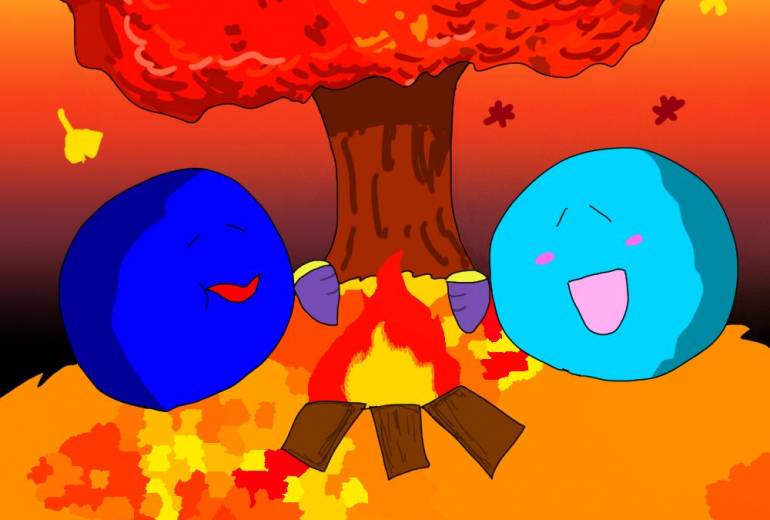紅葉とまんじゅう共