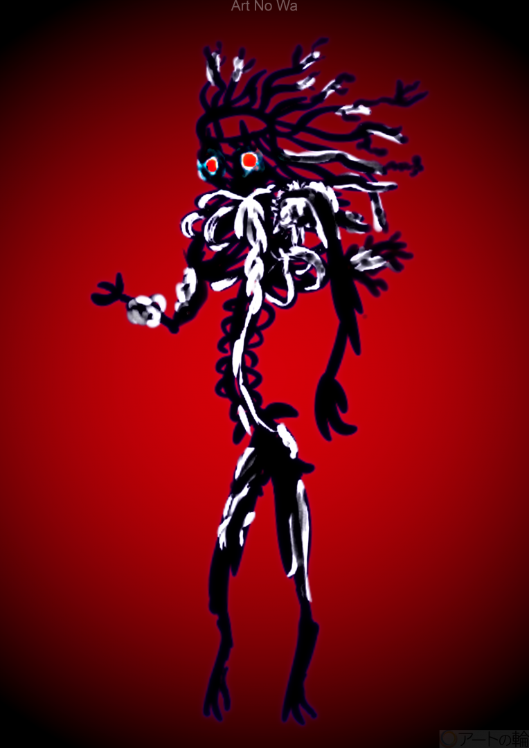 闇の世界に住む、未知の存在。それは形の無い小さな闇…それには明確な意志があった。それは…現世の全ての生命を食らい尽くす事だ…。目的はそれだけだ…。闇は“そのまま”では現世に存在できない。その為、闇は現世に存在する為に、無機物や死した生物を自身の肉体として取り込む事にした。そして、血肉と魂と物質を喰らい“小さな闇”は“大きな闇”へと姿形を変えて成長し続けるのだ。この姿は、闇の者が、人間の死体を取り込んだ姿。脆くぎこちない動きで、まるでゾンビのようだ。鹿のような角を生やしている為、動物の死体も少しだけ取り込んでいる可能性がある。