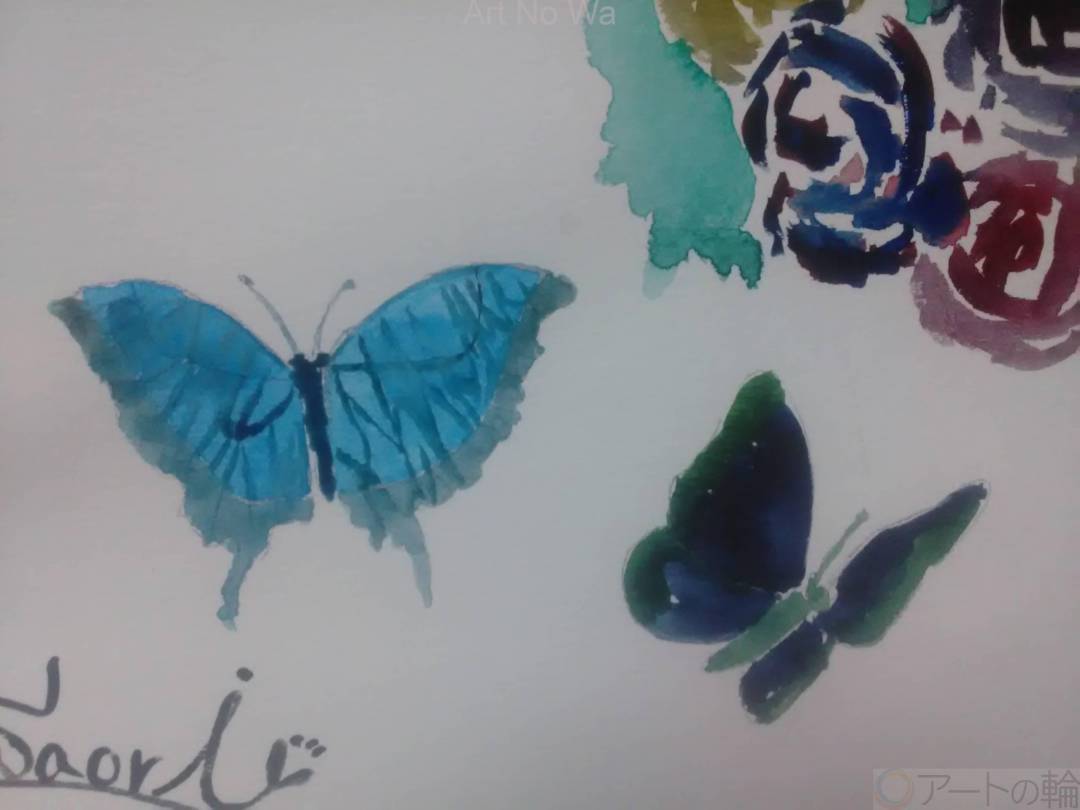 「蝶々とミニバラ」