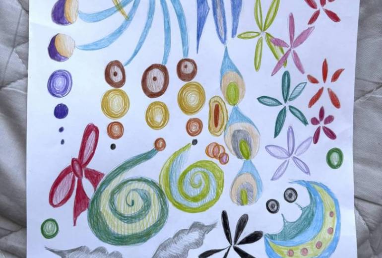 ペンと色鉛筆で描きました。
