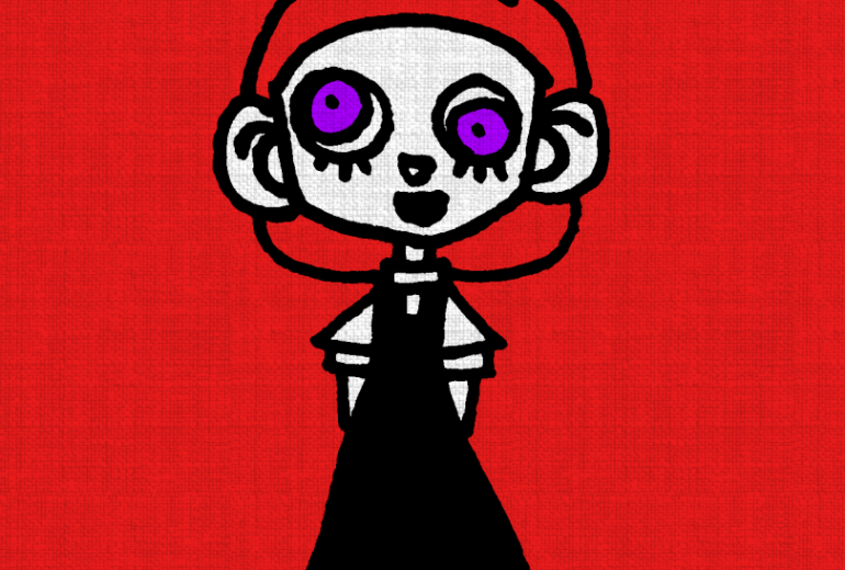 レトロ,赤,白,黒,人物,女性,かわいい,どきどき,びっくり,2D