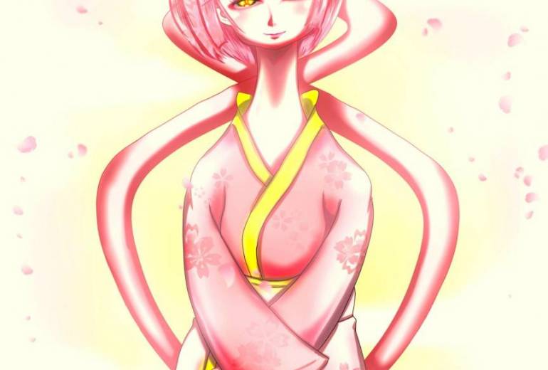 屋外,6月,水色,青,紫,想像上の生き物,女性,明るい,かわいい,2D