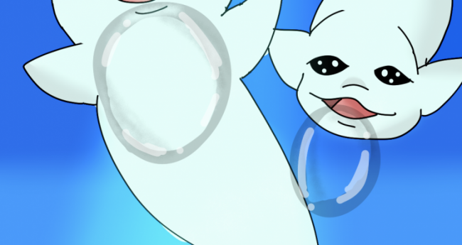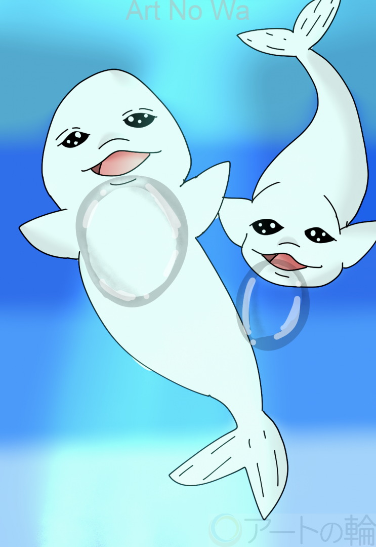 水中でリングの輪を出しているシロイルカを描いていました。 実物も見てみたいです。