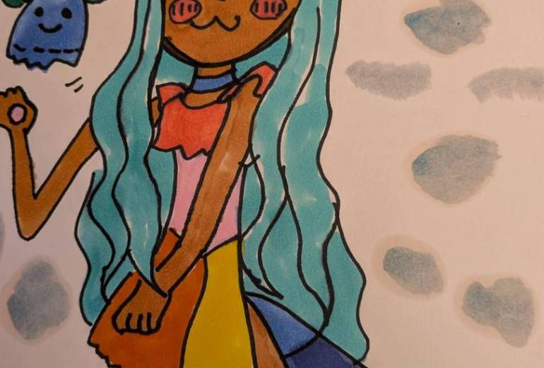 まずデッサンから取り組み、次第に背景や猫が仕上がりました。