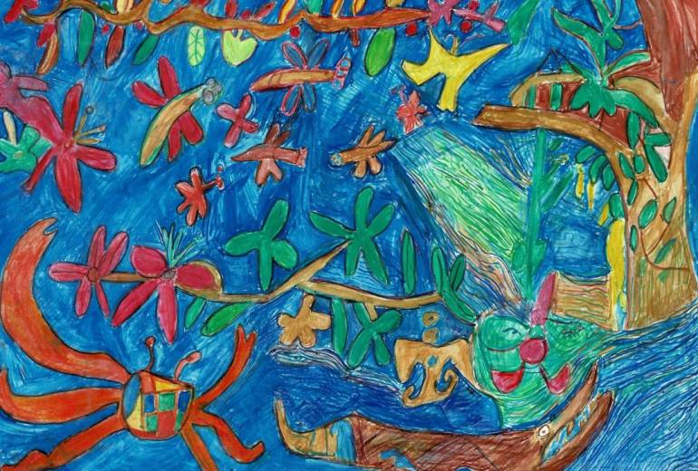 非現実,赤,オレンジ,黄色,緑,水色,青,植物,明るい,たのしい,わくわく