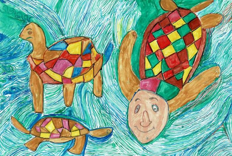私は、うめの木事業所で働いています。絵を描くのが大好きです。色んな絵を描きたいと思います。