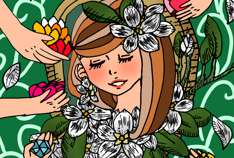 不思議な世界に迷い込んだ女の子や架空の生き物などでファンタジーな感じを表現してみました。