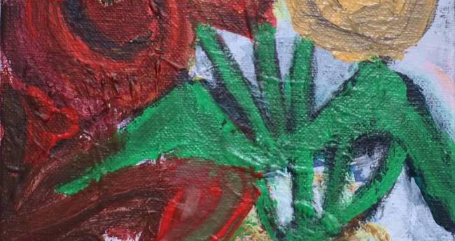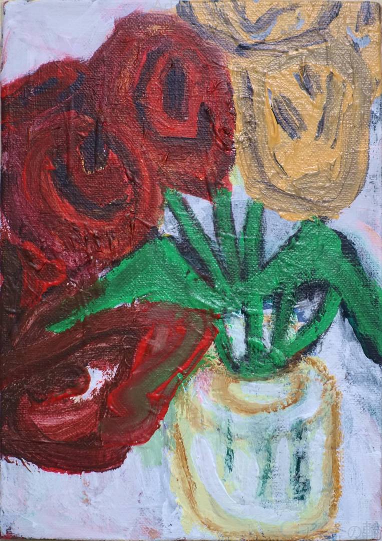 SMサイズの小さめの作品ですがバラの生命観がびっしり詰まるように描きました。