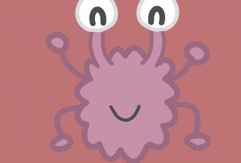 非現実,屋内,赤,緑,白,黒,静物,想像上の生き物,明るい,たのしい,かわいい,わくわく