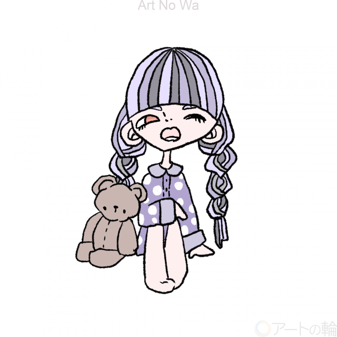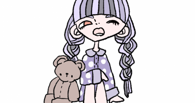 眠そうな女の子とテディベア