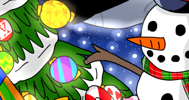 12月といえばクリスマスなので、ツリーや雪だるまなどクリスマスにあるものを詰め込んで描いてみました!