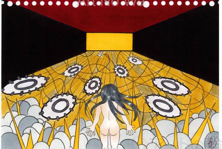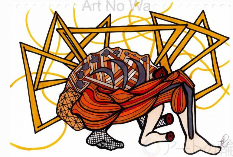 解離性同一性障害 常に相手に都合のいいように振舞って、演技を続けている。 本来の自分は醜くて不完全なのに。 だけど、演じなければ・・・・みんな私のせいで不幸になってしまう。 そんな強迫観念を持ってなんとか生きている。 みんなに見られている。 いつ仮面が壊れる?いつ、自分が壊れる? そんな恐怖を仮面のひび割れと傷口で表わした。 仮面は本当に演技なのか? 脱ぎ捨てられない他人の視線から作られた強迫観念は真実か? 他人の服を着ている自分 他人の服を着ている自分は誰だ? 私は、誰になればいいですか?