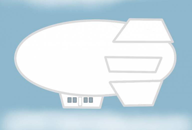 非現実,屋外,空,赤,黄色,水色,青,白,黒,人物,明るい,たのしい,わくわく