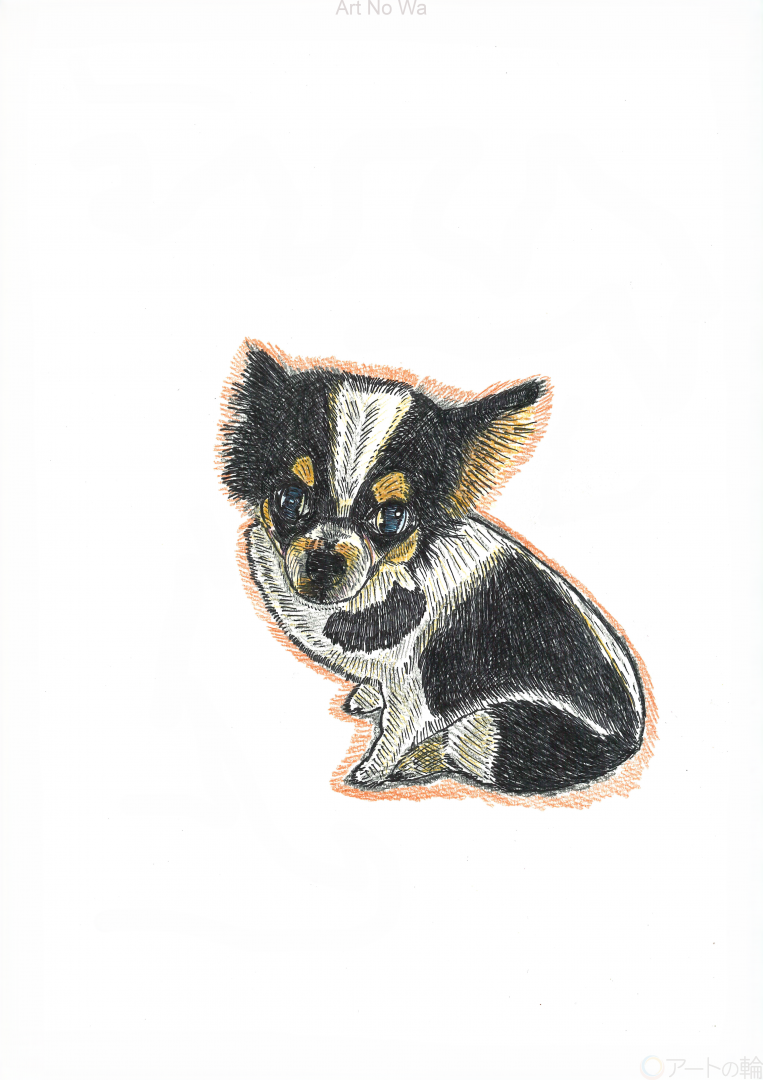 我が家の愛犬、オスのチワワ、チョコフォです。多分1歳半ぐらいの写真を参考に描きました。元々身体が丈夫でなく、けいれん持ちでありました。それもあってか、去年の2月に8歳で亡くなってしまいました。アリスの死から立て続けであったので、尚更寂しかったです。ただ、小さな身体で精一杯生きているチワワでもありました。他の体格の大きいオスとケンカになっても、持ち前のガッツで立ち向かっていました。そして描いてみてわかりましたが、とても写真写りの良いワンちゃんでもありました。どうせならもっとたくさん写真を撮ってあげれば良かったとも感じますが、今はこれを最良の一枚として、チョコフォに捧げたいと思います。