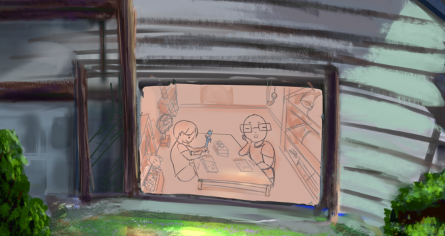 現実,屋内,過去,夏,水色,人物,風景,建造物,男性,大人,子供,明るい,2D